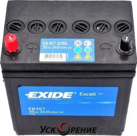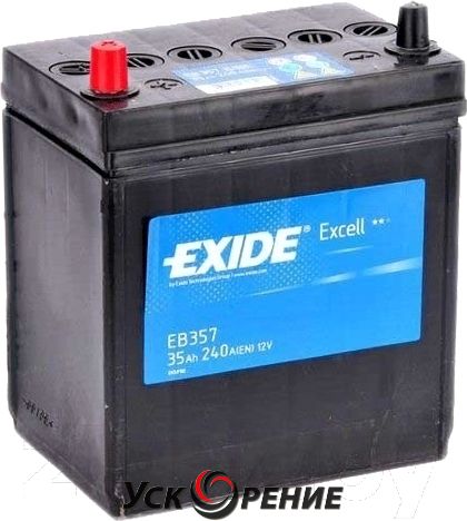Описание Автомобильный аккумулятор Exide Excell EB357 (35 А/ч); Емкость: 35 А·ч; Пусковой ток A (EN): 240 А; Полярность: прямая