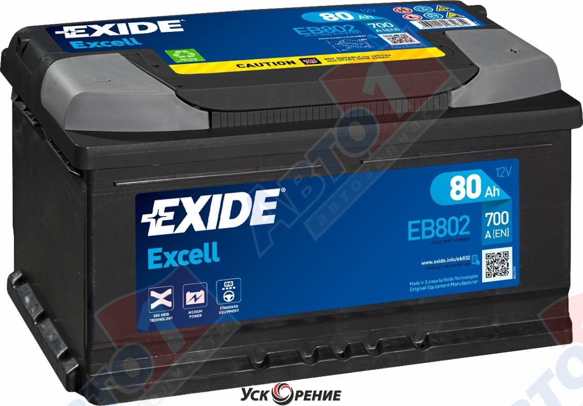 Описание Автомобильный аккумулятор Exide Excell EB802 (80 А/ч); Напряжение: 12V; Емкость: 80 А·ч; Пусковой ток A (EN): 700 А; Полярность: обратная