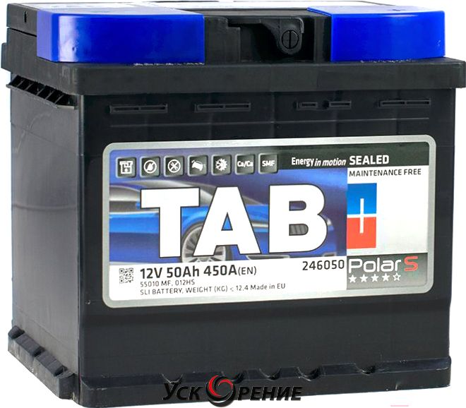 Описание Автомобильный аккумулятор TAB Polar 50 R / 246050 (50 А/ч); Тип батареи: Ca/Ca; Напряжение: 12V; Емкость: 50 А·ч; Пусковой ток A (EN): 450 А; Полярность: обратная