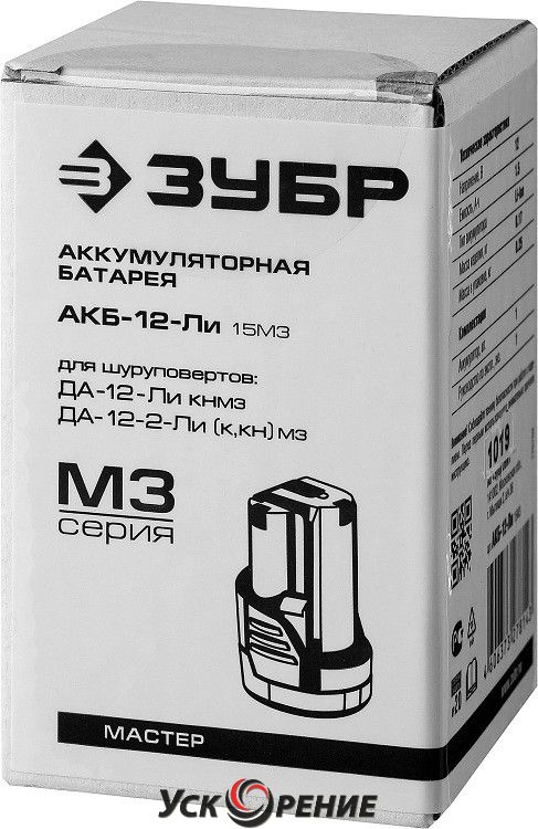 ЗУБР Аккумулятор АКБ-12-ЛИ 12 В, Li-Ion, (1.5 А/ч)