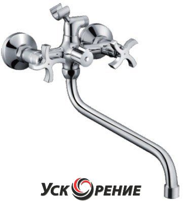 Описание Смеситель для ванны/душа, двухвентильный, запорный механизм: кран-букса, излив: поворотный, монтаж настенный, кол-во монтажных отверстий 2, материал корпуса: латунь.