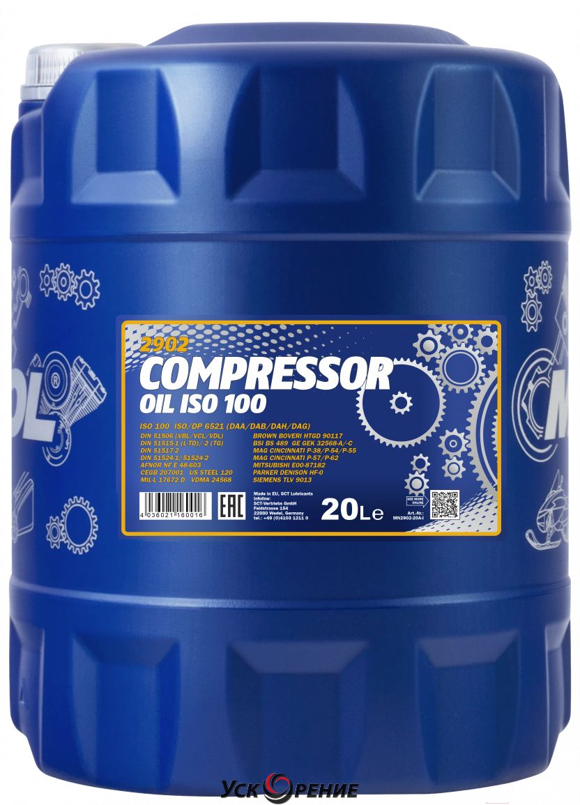 Описание Индустриальное масло Mannol Compressor Oil ISO 100 / MN2902-20 (20л); Назначение масла: компрессорное; Виды копрессоров: ротационный, воздушный, центробежный; Состав масла: минеральное