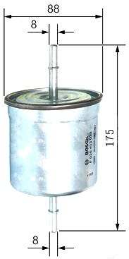Описание Топливный фильтр Bosch F026403030; Исполнение фильтра: проточный; Диаметр корпуса: 88 мм; Высота: 175 мм