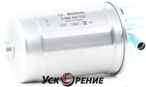 Описание Топливный фильтр Bosch 0986450509; Исполнение фильтра: прямоточный (циркуляционный); Диаметр корпуса: 88 мм; Высота: 164 мм