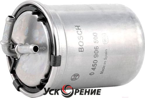 Описание Топливный фильтр Bosch 0450906500; Исполнение фильтра: прямоточный (циркуляционный); Диаметр корпуса: 90 мм; Высота: 110 мм