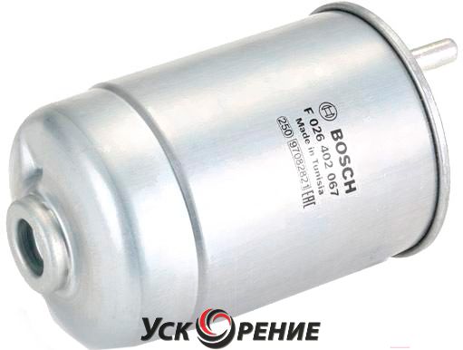 Описание Топливный фильтр Bosch F026402067; Исполнение фильтра: прямоточный (циркуляционный); Диаметр корпуса: 98 мм; Высота: 177 мм