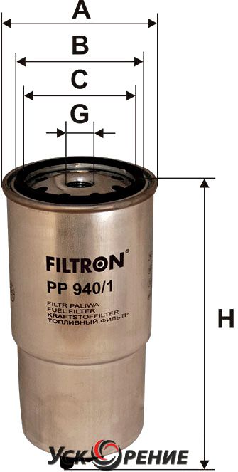 Описание Топливный фильтр Filtron PP940/1; Исполнение фильтра: накручиваемый; Диаметр корпуса: 85 мм; Высота: 186 мм; Резьба: M16x1.5