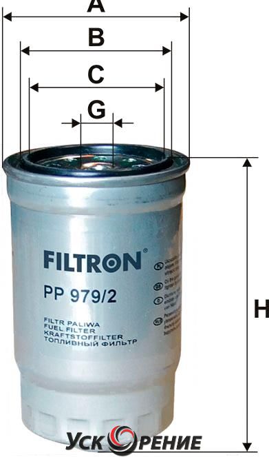 Описание Топливный фильтр Filtron PP979/2; Исполнение фильтра: накручиваемый; Диаметр корпуса: 84.5 мм; Высота: 152 мм; Резьба: M16x1.5