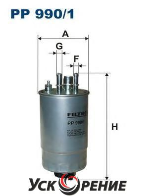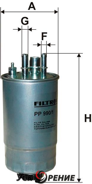 Описание Топливный фильтр Filtron PP990/1; Исполнение фильтра: прямоточный (циркуляционный); Диаметр корпуса: 90 мм; Высота: 204 мм