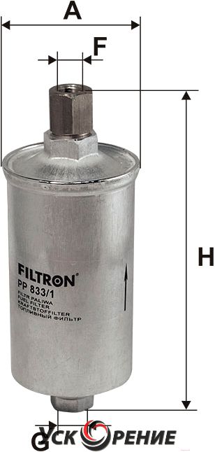 Описание Топливный фильтр Filtron PP833/1; Исполнение фильтра: прямоточный (циркуляционный); Диаметр корпуса: 58 мм; Высота: 155 мм; Резьба: M14x1.5