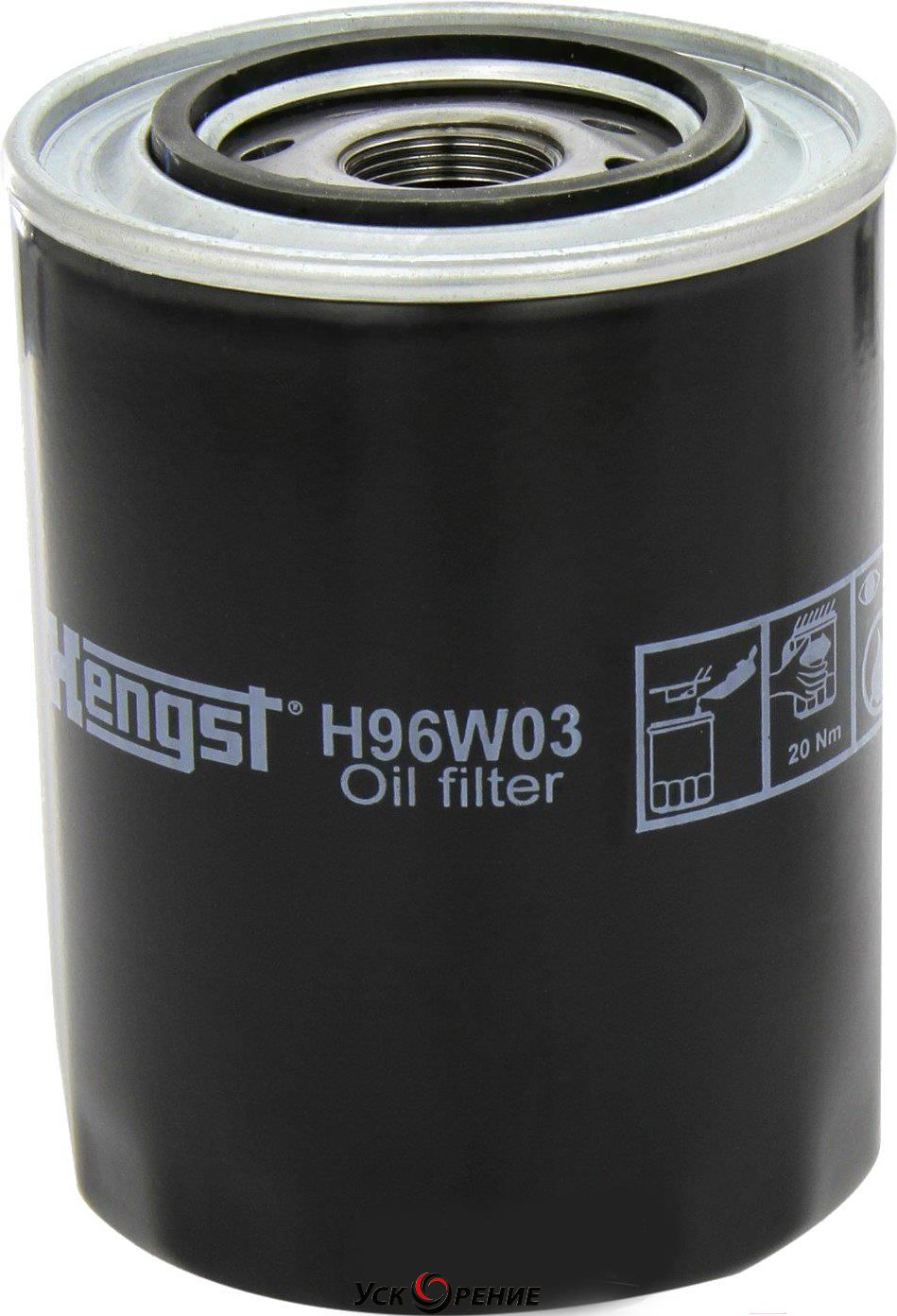 Описание Масляный фильтр Hengst H96W03; Исполнение фильтра: накручиваемый; Внешний диаметр: 104 мм; Высота: 152 мм; Резьба: M26x1.5