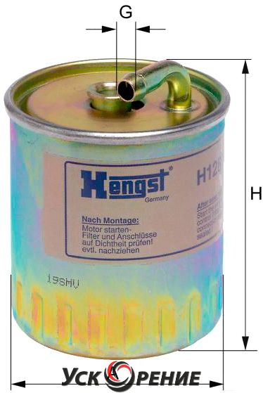 Описание Топливный фильтр Hengst H128WK; Исполнение фильтра: прямоточный (циркуляционный); Диаметр корпуса: 91 мм; Высота: 127 мм
