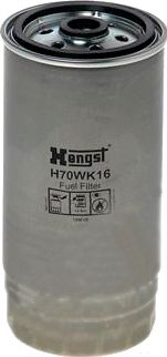 Описание Топливный фильтр Hengst H70WK16; Исполнение фильтра: накручиваемый; Диаметр корпуса: 84 мм; Высота: 179.5 мм; Резьба: M16x1.5