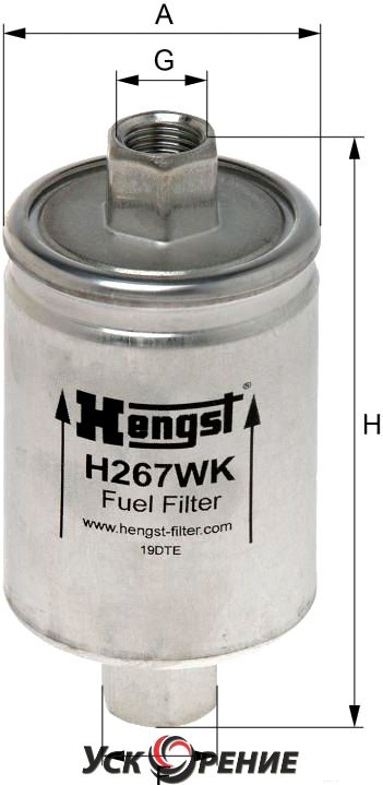 Описание Топливный фильтр Hengst H267WK; Исполнение фильтра: прямоточный (циркуляционный); Диаметр корпуса: 55 мм; Высота: 114 мм