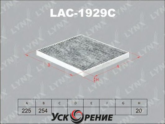Описание Салонный фильтр LYNXauto LAC-1929C (угольный); Тип фильтра: угольный; Высота: 20 мм; Длина: 225 мм; Ширина: 254 мм