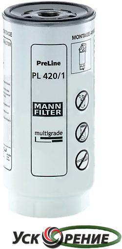 Описание Топливный фильтр Mann-Filter PL420/1X; Исполнение фильтра: накручиваемый; Диаметр корпуса: 108 мм; Высота: 231 мм; Резьба: 1"-14 UNF
