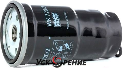 Описание Топливный фильтр Mann-Filter WK720/2X; Исполнение фильтра: накручиваемый; Диаметр корпуса: 65 мм; Высота: 123 мм; Резьба: 3/4"-16 UNF