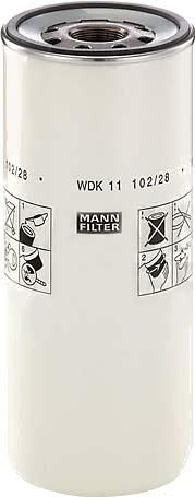 Описание Топливный фильтр Mann-Filter WDK11102/28; Исполнение фильтра: накручиваемый; Диаметр корпуса: 108 мм; Высота: 262 мм; Резьба: M32x1.5