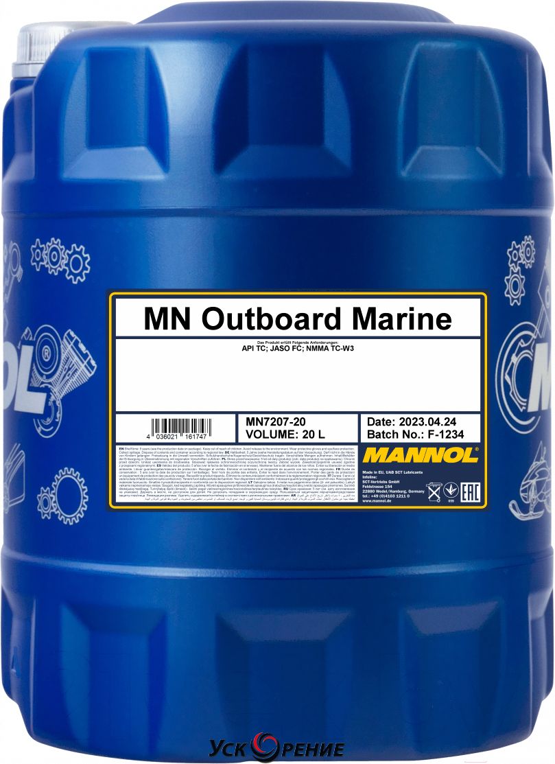 Описание Моторное масло Mannol 2-Takt Outboard Marine API TD NMMA TC-W3 / MN7207-20 (20л); Состав масла: полусинтетическое; Тип двигателя: 2-тактный для лодочных; Объём: 20 л