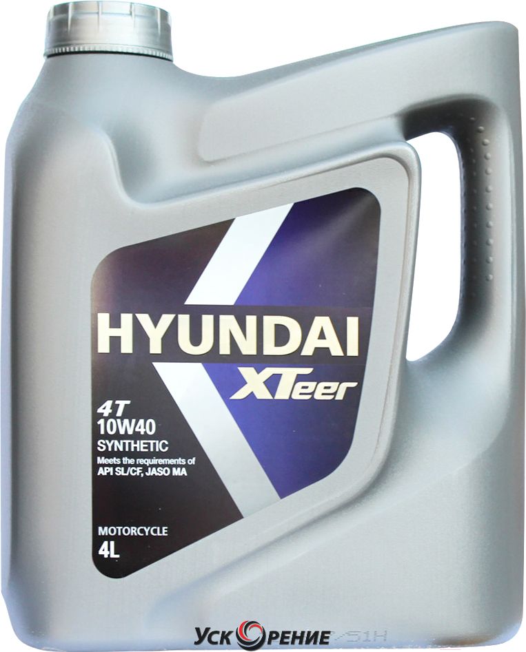 Описание Моторное масло Hyundai XTeer 4T 10W40 / 1041016 (4л); Состав масла: синтетическое; Вязкость: 10W-40; Тип двигателя: 4-тактный мото; Объём: 4 л