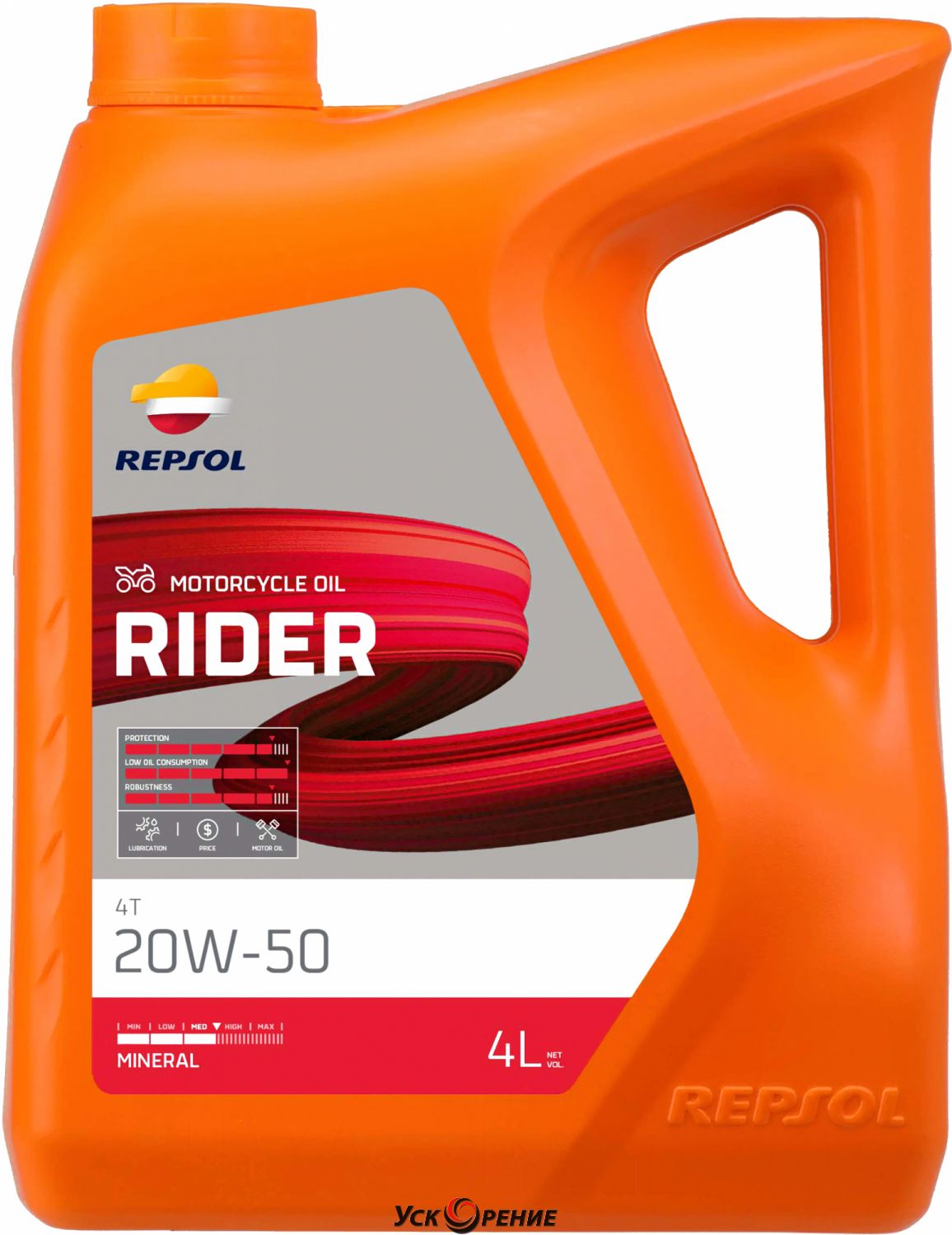 Описание Моторное масло Repsol Moto Rider 4T 20W50 / RP165Q54 (4л); Состав масла: минеральное; Вязкость: 20W-50; Тип двигателя: бензиновый, 4-тактный мото; Объём: 4 л