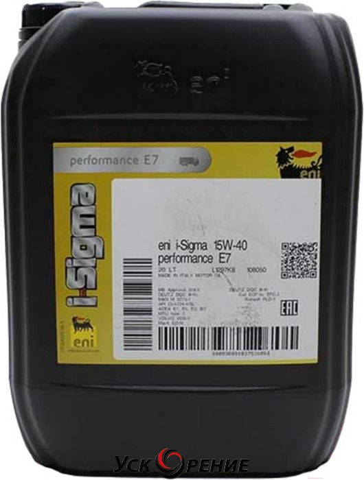 Описание Моторное масло Eni I-Sigma Performance E7 15W40 (20л); Состав масла: минеральное; Вязкость: 15W-40; Тип двигателя: дизельный; Объём: 20 л