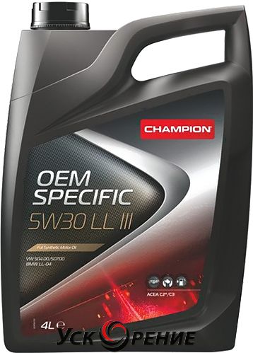 Описание Моторное масло Champion OEM Specific LL III 5W30 / 8208218 (4л); Состав масла: синтетическое; Вязкость: 5W-30; Тип двигателя: бензиновый, дизельный; Объём: 4 л