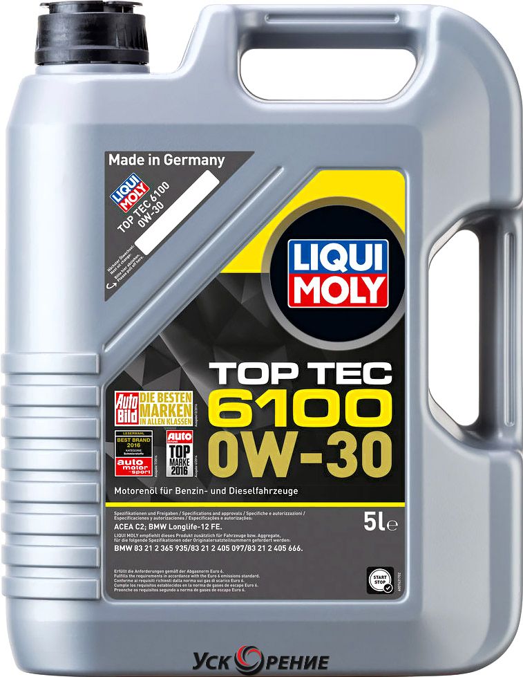 Описание Моторное масло Liqui Moly Top Tec 6100 0W30 / 20779 (5л); Состав масла: синтетическое; Вязкость: 0W-30; Тип двигателя: бензиновый, дизельный; Объём: 5 л