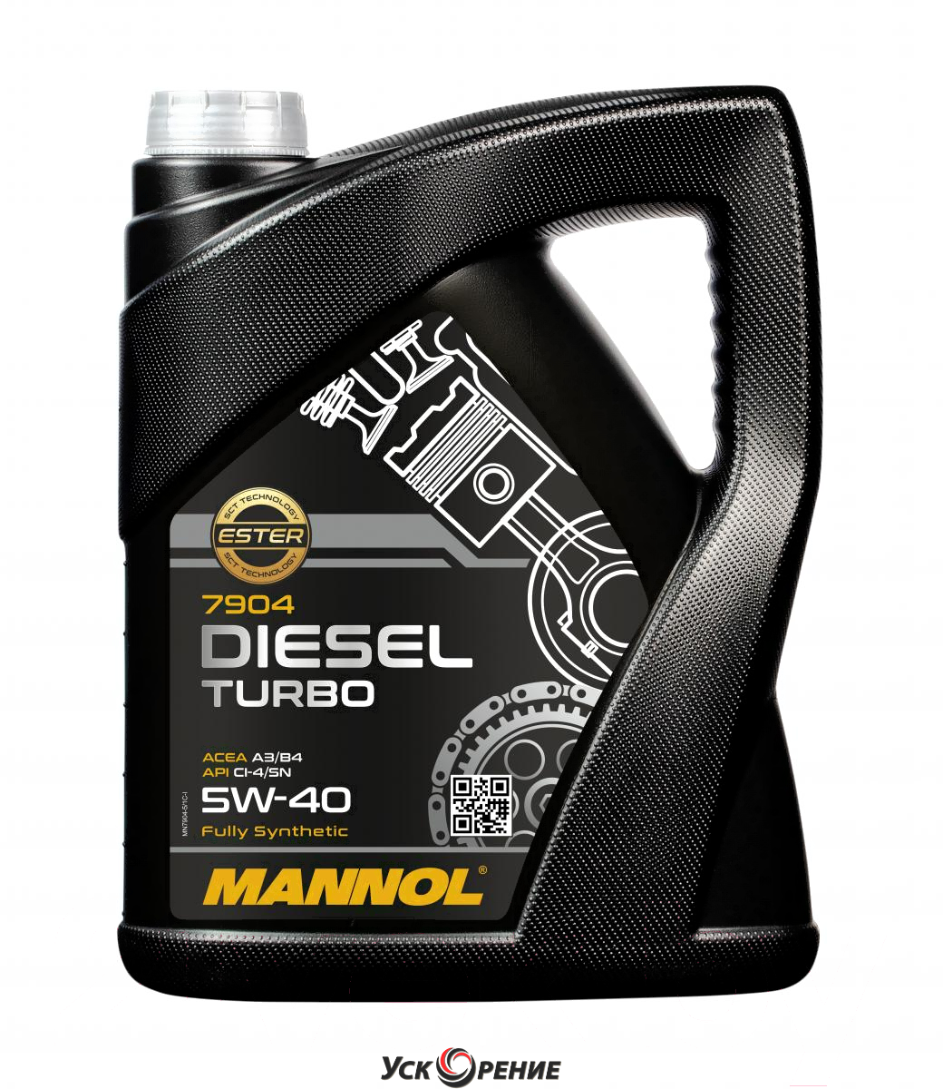 Описание Моторное масло Mannol Diesel Turbo 5W40 CI-4/SL / MN7904-5 (5л); Состав масла: синтетическое; Вязкость: 5W-40; Тип двигателя: бензиновый, дизельный; Объём: 5 л