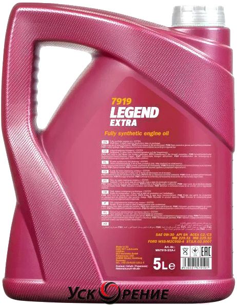 Описание Моторное масло Mannol Legend Extra 0W30 SN C2/C3 / MN7919-5 (5л); Состав масла: синтетическое; Вязкость: 0W-30; Тип двигателя: бензиновый, дизельный; Объём: 5 л