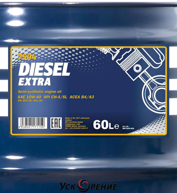 Mannol Diesel Extra 10W-40 CH-4/SL 60л — всесезонное полусинтетическое моторное масло, предназначенное для дизельных двигателей автомобилей. Обладает оптимальными низкотемпературными характеристиками и высокой термоокислительной стабильностью. Специально разработано для двигателей, оснащенных турбонаддувом. Обеспечивает надежную защиту от износа и исключительную чистоту деталей двигателя.