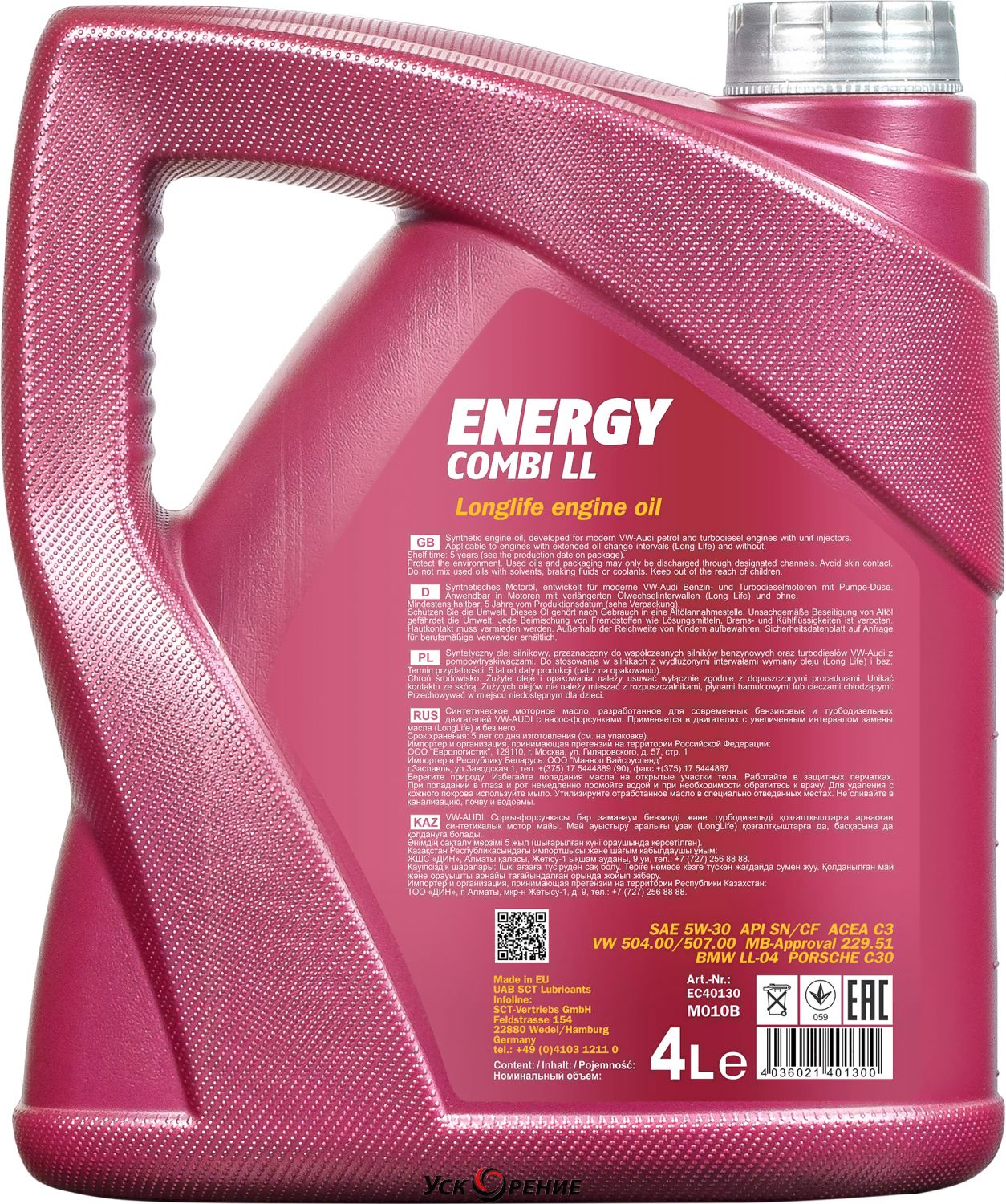 Описание Моторное масло Mannol Energy Combi LL 5W30 SN/CF / MN7907-4 (4л); Состав масла: синтетическое; Вязкость: 5W-30; Тип двигателя: бензиновый, дизельный; Объём: 4 л