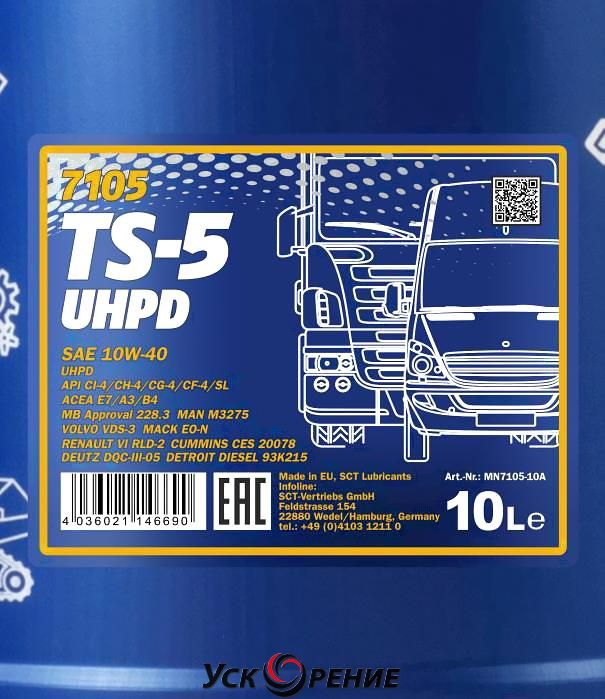 Описание Моторное масло Mannol TS-5 10W40 CI-4/SL / MN7105-10 (10л); Состав масла: полусинтетическое; Вязкость: 10W-40; Тип двигателя: дизельный; Объём: 10 л