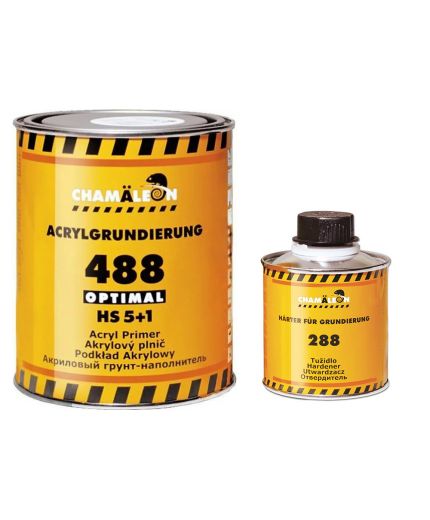 Chamaleon 488 Грунт-наполнитель 5+1 HS Optimal серый 1л — двухкомпонентный высокопрочный грунт-наполнитель качества High Solids. Композиция на основе функционально-замещенного акрилового сополимера.