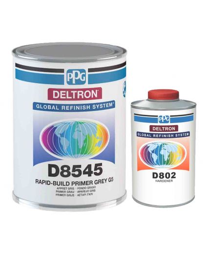 Грунт-наполнитель PPG Deltron D8545 2К 4:1 серый с отвердителем D802 Hardener 1л - грунт-наполнитель с высоким сухим остатком для широкого спектра ремонтных работа: как для локальных, так и ремонтов целых деталей.