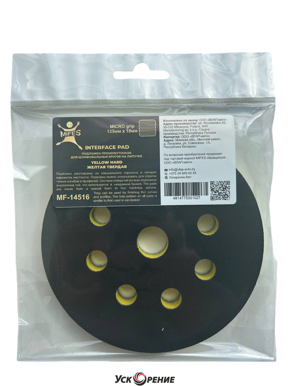 MIFES Подложка промежуточная на липучке MICRO grip 125мм х 10мм ЖЁЛТАЯ твёрдая для шлифовальных кругов