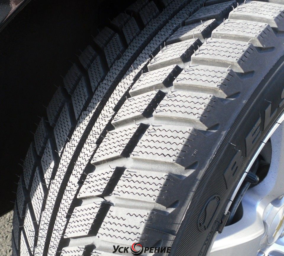 Описание Отличные сцепные свойства и низкий уровень шума достигаются благодаря широкому распределению шипов по всей поверхности покрышки.