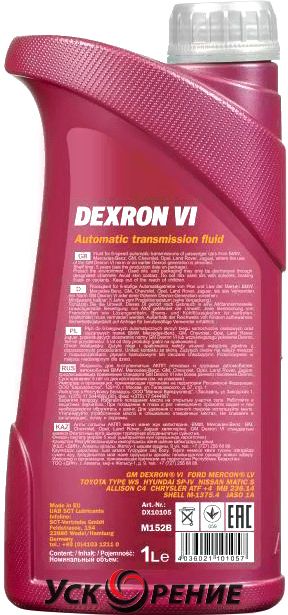 Описание Трансмиссионное масло Mannol ATF Dexron VI / MN8207-1 (1л); Объем: 1 л; Место применения: АКПП